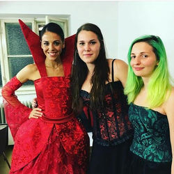 As a final graduation project for school, I designed and created a very detailed dress together with a classmate (it's called "Diplomarbeit" here, don't know how to translate that :) ) for the character "Sarah" in the musical "Dance of the Vampires". We got commissioned to sew it by Mamaz, the creators of the Austrian Convention "Made in Japan". It was a very, very detailed project (most fancy dress I ever worked on!) and we are very proud of our work. :) The theater evening at the convention was simply amazing, and I cherish that I got to be part of something this big. The one wearing our dress on stage was the actress Marjan Shaki, what an honor!